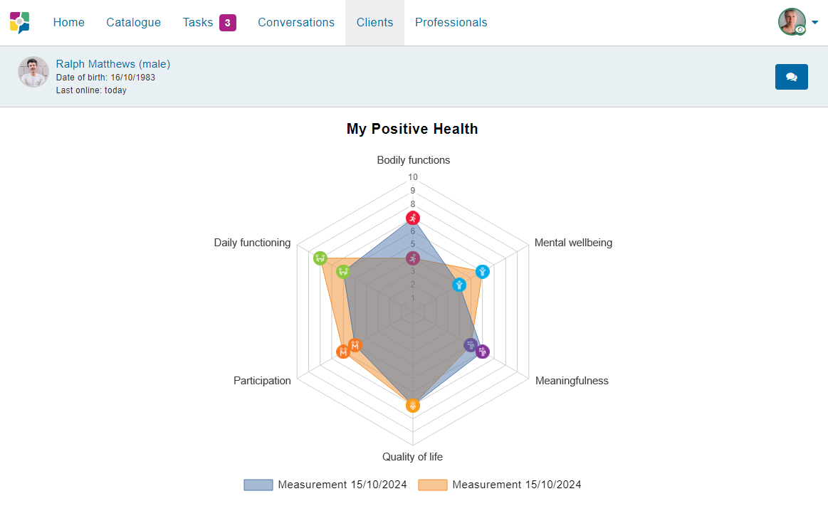 With a monitoring you can offer questionnaires that have more than 1 measurement moment. To provide insight into a client's progress, the results of the monitoring are compared and graphically displayed.